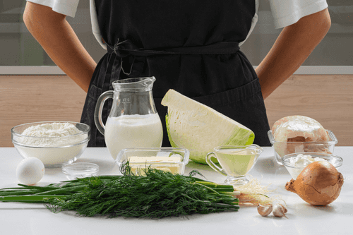 Prepare the filling. Finely chop the cabbage and onion, and sauté in vegetable oil for 5 minutes.