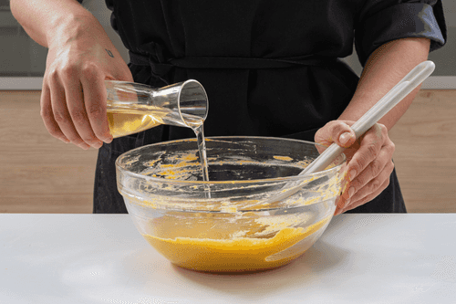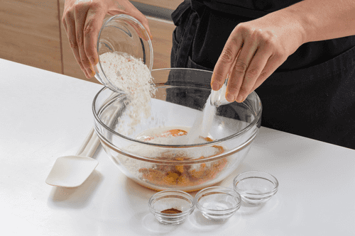 Mix the puree with egg, flour, baking powder, cinnamon, sugar, and salt.