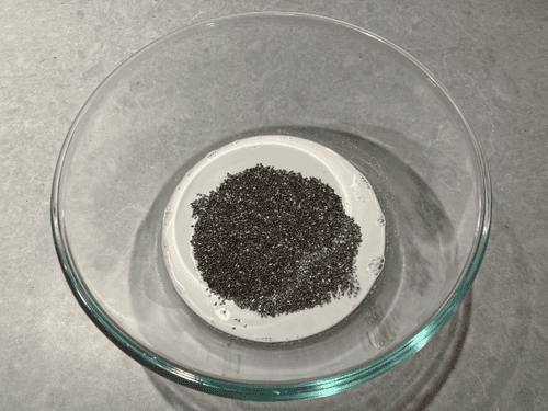 Add chia seeds, mix, and let them swell.