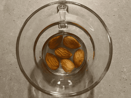 Pour boiling water over the almonds and let them sit for 15 minutes.