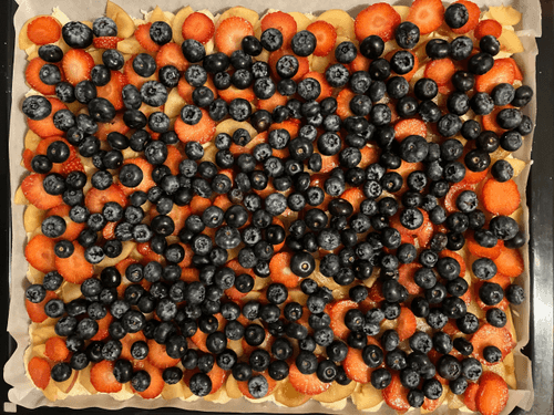 Kuch with a filling of berries and fruits is a delicate, crumbly pie rooted in Russian cuisine. It combines the softness of cottage cheese with the juiciness of berries and fruits, creating a rich, refreshing flavor. In this dessert, the tartness of plums and blueberries intertwines with the sweetness of strawberries and bananas, while the crispy crust made from buttery dough gives it a special texture. Historically, kuch was prepared for family gatherings, decorated with fresh berries and mint for aroma. It can be served as a morning dessert with tea or as a festive treat. This pie brings warmth and comfort, reminding us of home traditions and joyful moments with loved ones.