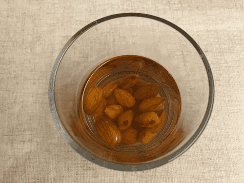 Pour boiling water over the almonds.