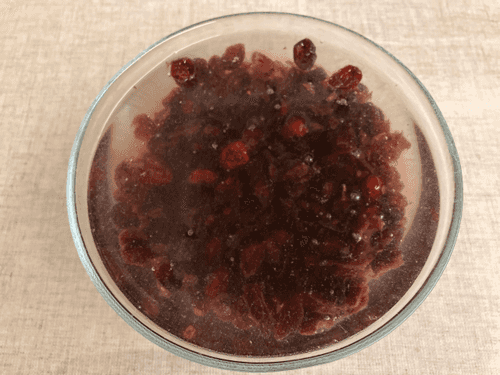 Pour boiling water over the dried cranberries.