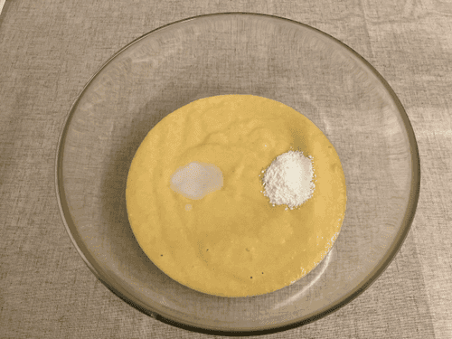 Add vanillin and baking soda dissolved in boiling water to the dough and mix.
