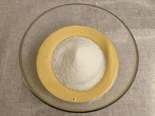 Add sugar to the dough and mix.