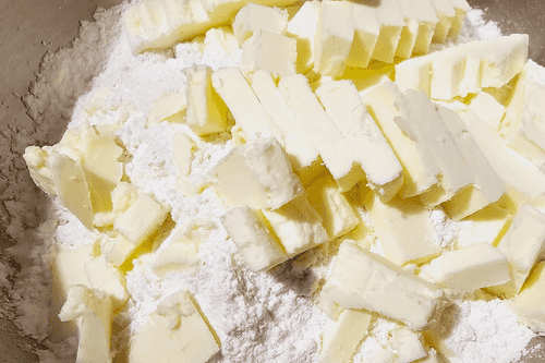 Add butter (120 g) to the flour and rub into crumbs. Pour in 3 tablespoons of ice water. Mix until the mixture starts to form a ball. The dough should be soft and elastic. Cover and refrigerate for 30 minutes.