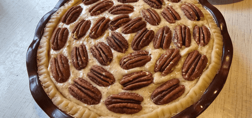 Set aside some nuts for decorating the pie, and grind the rest to add to the mixture.