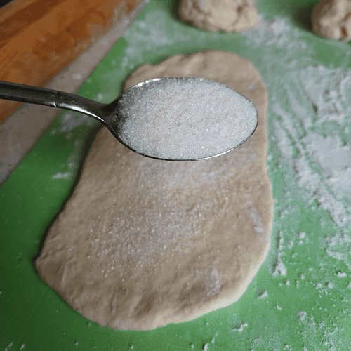 Sprinkle 10-15 grams of sugar on the surface of the dough.