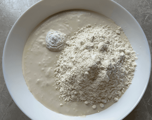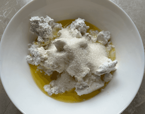 Add coconut cream, sugar, and a pinch of salt to the butter.