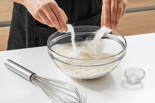 In another bowl, mix flour, baking powder, baking soda, and salt.