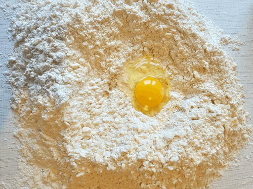 Crack 1 egg into the flour.