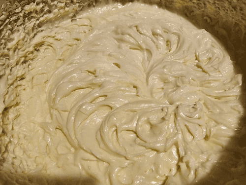 Whip the butter (200 g), add the egg mixture and whip again into a fluffy mass.
