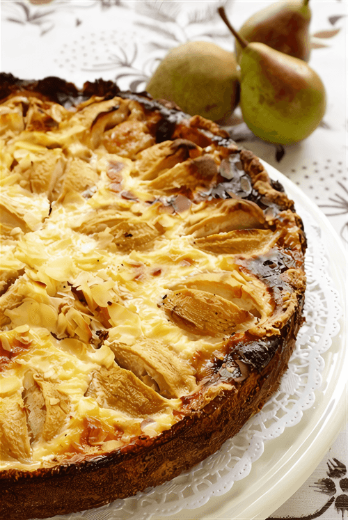 Pear pie is the embodiment of French elegance and sophistication in cuisine. Its history roots back to the traditions of tarte Tatin, where caramelized fruits are paired with airy puff pastry. In this recipe, delicate pears are infused with the aroma of lemon zest and soft caramel glaze, creating a rich and balanced flavor. The crispy crust contrasts with the juicy fruit filling, while a nut topping adds an exquisite texture to the pie. This dessert is perfect for a cozy evening with a cup of aromatic coffee or as a stunning finale to a festive dinner. Served with cream or vanilla ice cream, it becomes even more luxurious. Pear pie is not just a dessert but a true gastronomic delight that awakens warm memories of France.