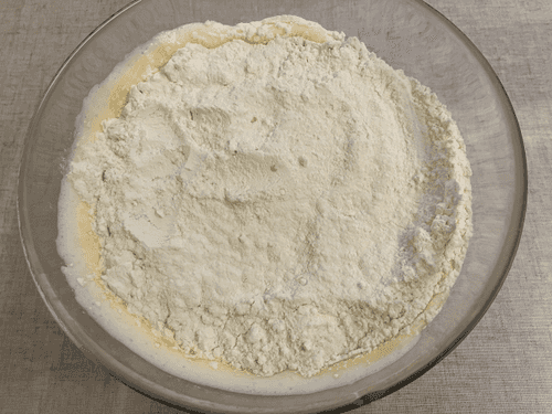 Add flour to the eggs and mix thoroughly.