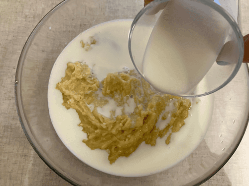 Add 1 cup of milk and mix thoroughly.
