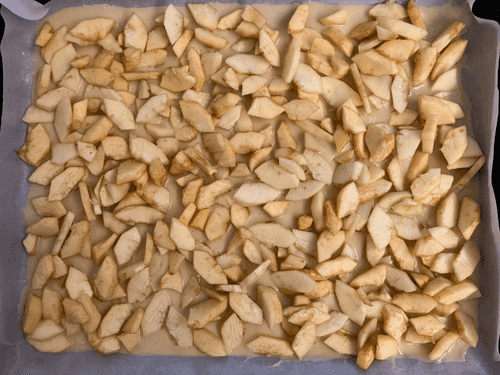 Line the baking tray with parchment and place the apples on it.