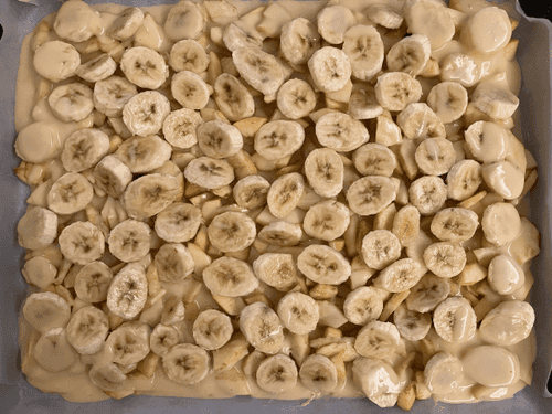 Place banana slices on top of the apples.