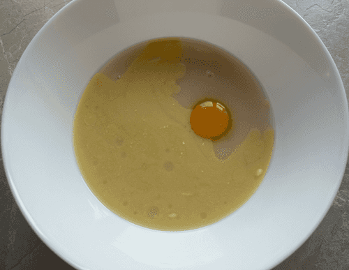 Add an egg and melted butter.