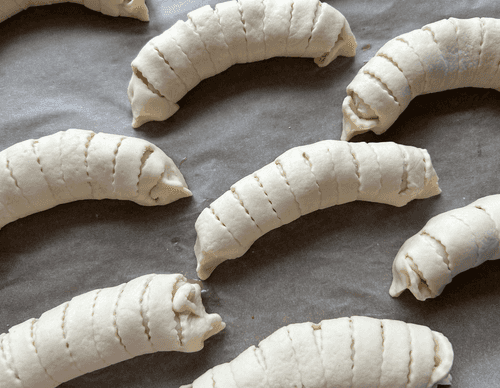 Divide the dough into ten parts.