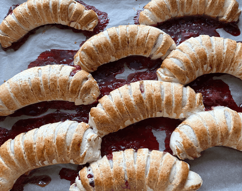 Strawberry buns are a delicate and airy treat that combines the softness of yeast dough with the juiciness of sweet berries. This recipe is inspired by traditional Russian baking, where simple ingredients transform into a culinary masterpiece. The strawberry filling, slightly caramelized with sugar and starch, gives the buns a vibrant aroma and natural sweetness. They are served warm, complemented by a cup of tea or coffee, creating a cozy atmosphere of home indulgence. With their crispy golden crust and tender texture, these buns are perfect for breakfast or an afternoon dessert. This recipe brings joy and warmth, reminiscent of a grandmother's house where the scent of fresh baking fills the kitchen.