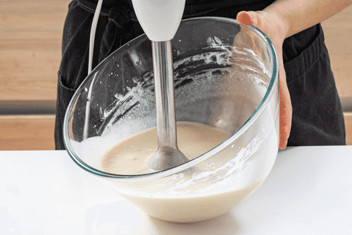 Heat the pan well and pour a ladle of batter onto it, spreading it evenly across the bottom.