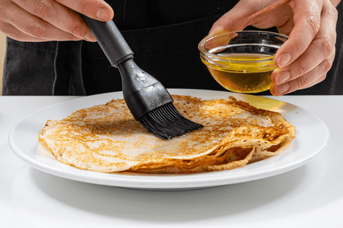 Stack the ready pancakes, optionally greasing each with melted butter.