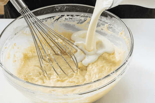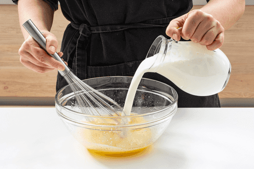 Gradually mix half the volume of kefir into the eggs.