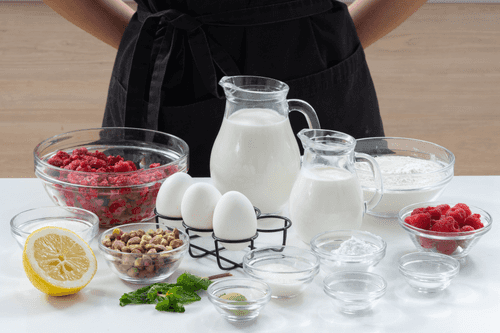 Prepare all the ingredients. Heat the milk to 40 degrees.