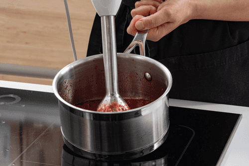 Whip the raspberry mixture until smooth and boil for 7-10 minutes until it thickens to a jam consistency.