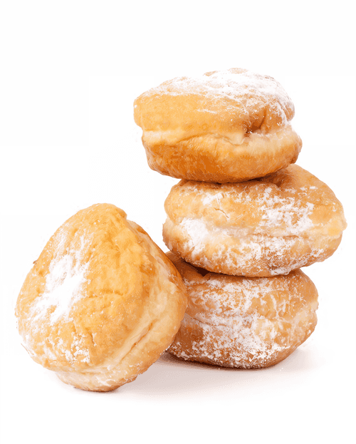Remove with a slotted spoon. Let the oil drain and coat the finished donuts in powdered sugar.