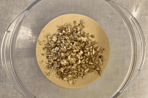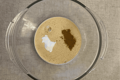 Add cinnamon, vanillin, baking soda extinguished with boiling water, and mix thoroughly.