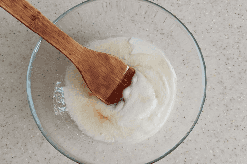 Warm the kefir and pour it into a deep bowl.