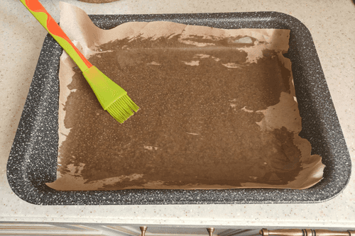 Line the baking sheet with parchment paper and grease it with sunflower oil.