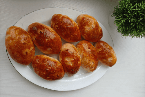 Place the pies on a baking sheet and brush with egg yolk. Bake for 20-25 minutes at 200 degrees.
