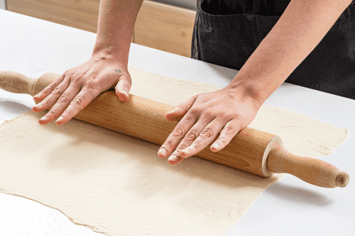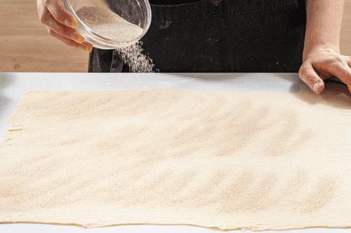 Carefully flip the dough, sprinkle with the remaining sugar mixture, and roll it out again.
