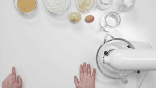 In the mixer bowl, add flour, 1 egg, cream, and 30 ml of vegetable oil. Knead a uniform soft dough.