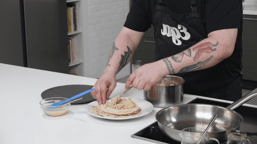 On the half-prepared kystyby, place the millet filling and cover with the second half of the flatbread, folding it in half.