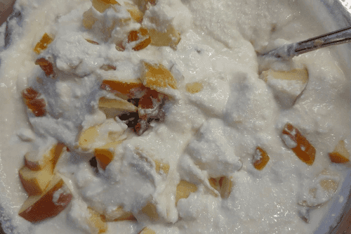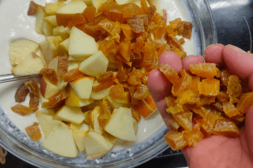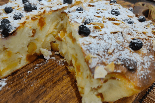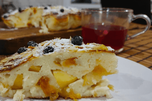 Cottage cheese casserole with apples and dried apricots is a delicate and airy treat infused with the aroma of fruits and a light tang from yogurt. Its roots trace back to traditional dairy desserts popular in various countries. Cottage cheese gives the casserole a rich flavor and health benefits, apples add freshness, while dried apricots provide gentle sweetness. Almond flakes and berries make the dish exquisite, and powdered sugar enhances its appeal. Perfect for a cozy breakfast, light snack, or as an elegant dessert for tea. The casserole combines simplicity in preparation with a rich taste that delights both lovers of classic cuisine and those who appreciate unusual ingredient combinations.