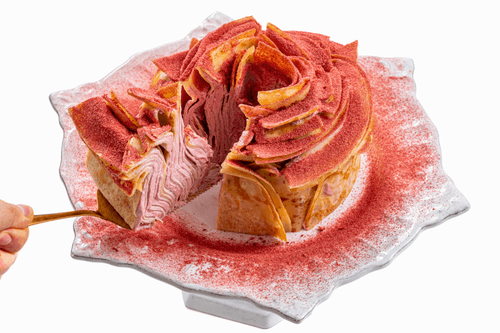 Блинный торт «Роза» с малиновым кремом — это элегантное сочетание воздушных блинов и нежного ягодного крема, воплощающее в себе искусство русской кухни. Его форма напоминает распустившуюся розу, символизируя изящество и утонченность. Истоки рецепта уходят в традиции создания многослойных десертов, где каждый элемент пропитывается ароматами друг друга. Вкус торта — гармония сладости и легкой кислинки малины, дополненной сливочной мягкостью творожного сыра. Этот десерт идеально подходит для особых случаев, удивляя не только вкусом, но и внешним видом. Его подают охлажденным, чтобы каждый слой сохранил текстуру, а аромат раскрылся в полной мере. Посыпка из сублимированной малины придает завершённость композиции, добавляя легкую фруктовую ноту в каждый кусочек.