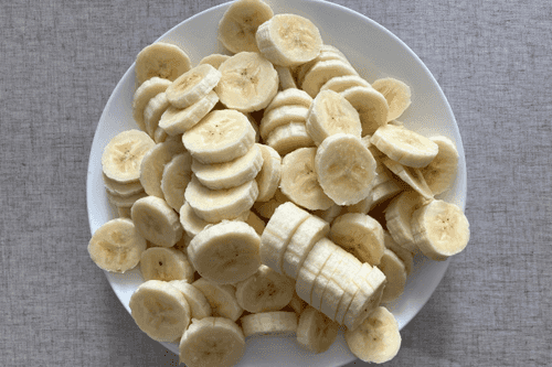 Peel the bananas and slice them into thin rounds.