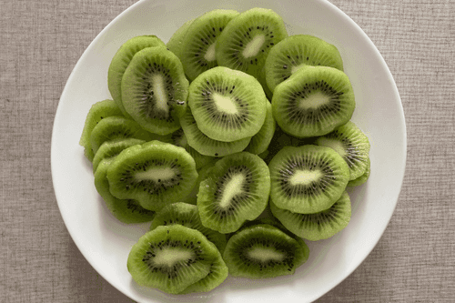 Slice the kiwi into thin rounds.