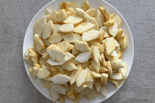 Slice the apples into thin wedges.