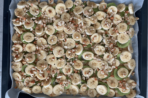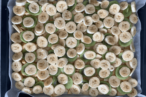 Top with kiwi and bananas.