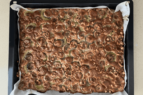 Pour the remaining batter on top and sprinkle with nuts.