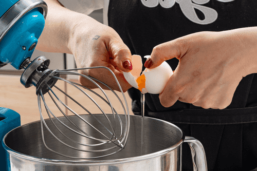 Beat the eggs with sugar until fluffy.