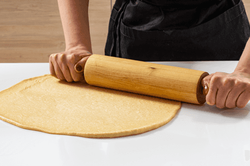 Divide the rested dough into two parts for convenience and roll it out into a thin layer.