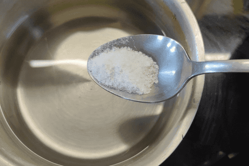 Salt the water and put it on the fire until it boils.