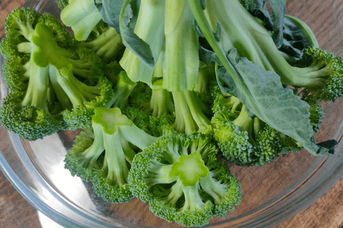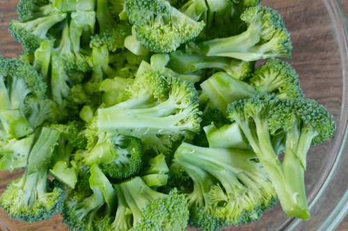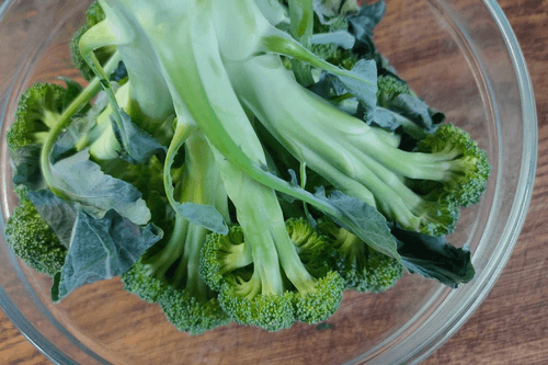 Turn the broccoli head upside down in the bowl with the florets.