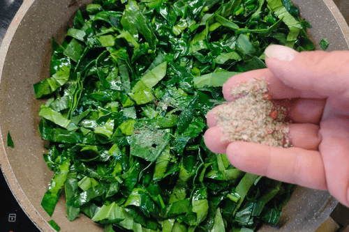 Fry the chopped spinach in vegetable oil and add salt.