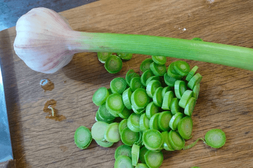 Chop the garlic stems (leaves).